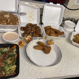 Today my husband and I decided to come here today for lunch. The husband called to place an order over the phone but were told that'll we need to go there today since there's a $60 minimum limit, which was fine. We ordered everything that you see in the picture. Once we got there she asked for our payment card and an ID to make sure it was us that was paying and not someone else's card being used (which is fine). They are short staffed, we're very patient people so this didn't bother us. After paying I believe our food was ready within 15 minutes I believe. The lady that took our order and everything was very nice. Out of everything we ordered we mainly liked the fried rice, egg drop soup and general Tao chicken (was a little soggy due to the ride home but I put it in the air fryer for a little bit which wasn't a big deal to me). I personally wasn't a fan of everything else that we ordered (wings, lo mein, beef & broccoli) due do lacking flavor, still tasting the starch on the white rice and noodles being very dry and having a weird aftertaste on the beef. Other than that I would come back for the same three items. But all in all this place is trying and being short staffed can be very stressful so I get it. Thanks again.